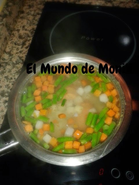 En primer lugar se debe poner un cazo mediano y llenarlo de agua para ponerlo a hervir junto a las zanahorias a trocitos, las patatas y las judías boby.